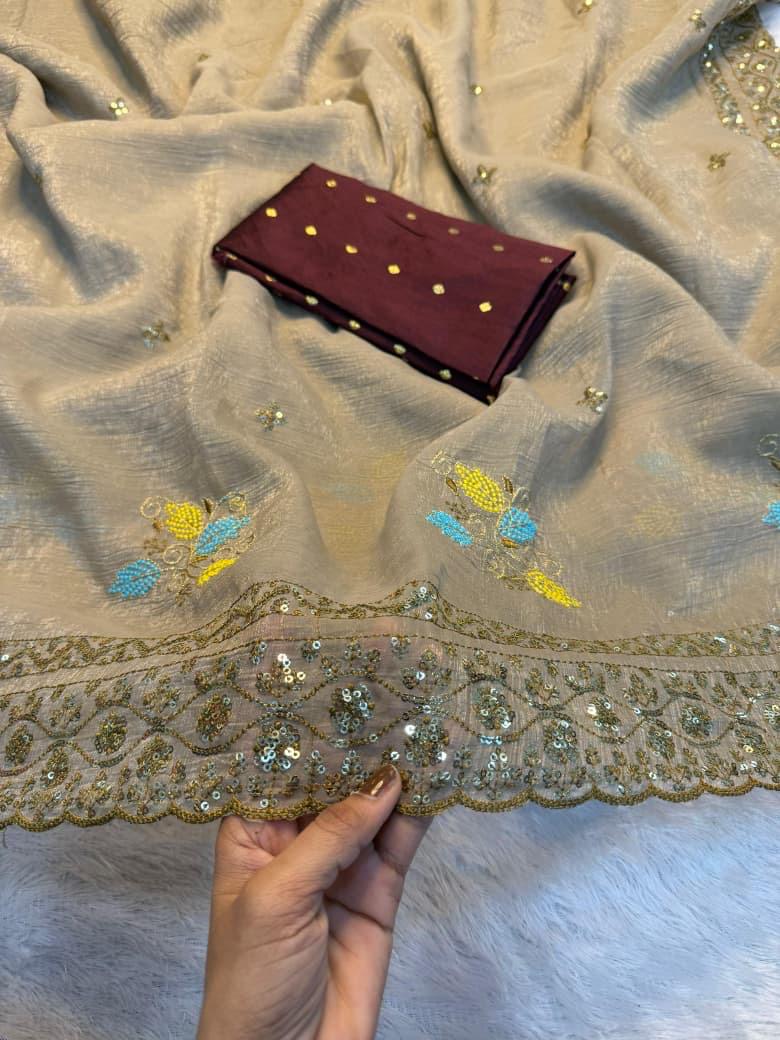 Blouse   Heavy Embroidery with contrast Blouse (Unstiched)